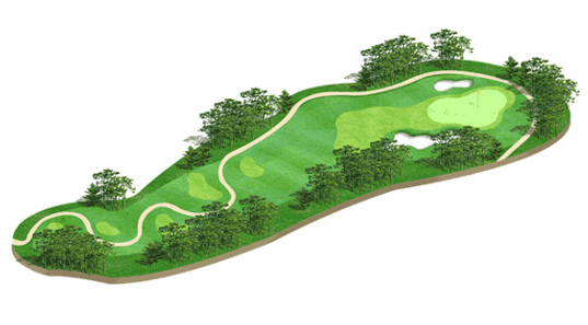 티샷의 낙차가 가장 많은 숏홀로 그린 주위 4개의 벙커와 좌측 OB선이 티에 서있는 골퍼를 압도한다. 방향성을 중시하는 티샷을 날린다면 어프로치는 쉬운 홀이다.